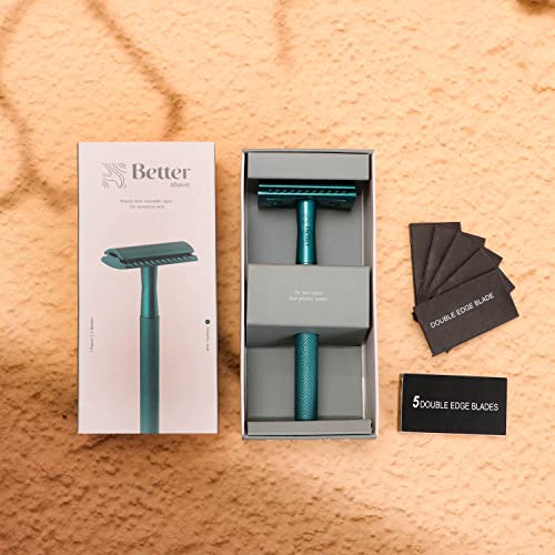 Bettershave Single Blade Razors for Women Set (Reusable metal handle + 5 blades) Safety Razor for Women Shaving Sensitive Skin on Body, Legs and Bikini area - Teal