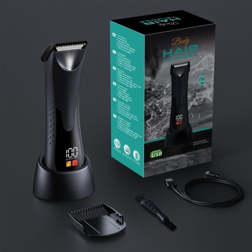 7d24hcare Groin Hair Trimmer - Electric Manscape Trimmer for Men, Waterproof Ball Trimmer for Pubic/Body/Groin Grooming with Ceramic Blade, LED Light, Charging Base