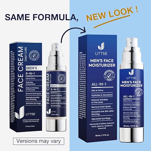 Uttse 6-in-1 Mens Face Moisturizer: Anti Aging Face Cream - Eye Bags Treatment - Skin Care for Men - 1.7 fl oz
