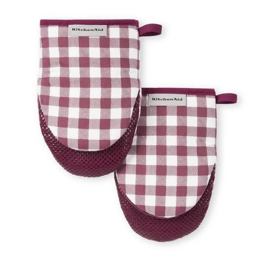 KitchenAid Gingham Mini Oven Mitt 2-Pack Set, Blue Velvet, 5.5"x8"