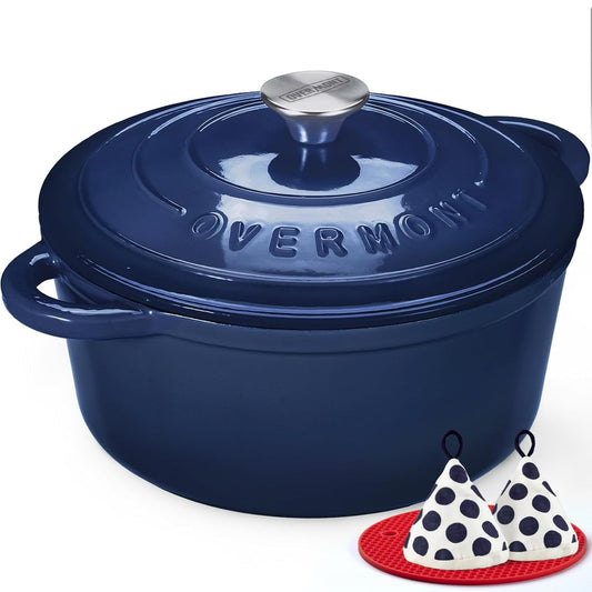 Overmont Enameled Cast Iron Dutch Oven - 4.5QT Pot with Lid Cookbook & Cotton Potholders - Heavy-Duty Cookware for Braising, Stews, Roasting, Bread Baking bottle green