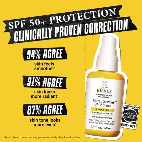Kiehl's Better Screen UV Serum SPF 50+ - Invisible Facial Sunscreen with Collagen Peptide & UV Protection