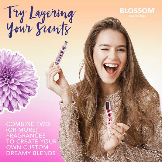 Blossom Roll on Rollerball Perfume Oil with Natural Ingredients, Essential Oils & Eau De Parfum Plant Based Perfume Spray, Infused with Real Flowers, 2 Pack Bundle, Lavenderwood/Afleurdesiac
