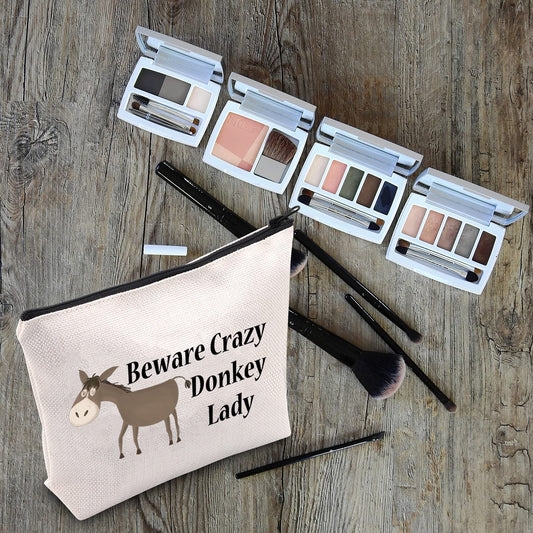 LEVLO Funny Donkey Lovers Gifts Beware Crazy Donkey Lady Makeup Bags Donkey Mom Cosmetic Gifts (Beware Crazy Donkey Lady)