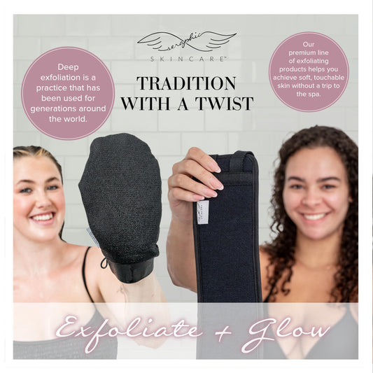 Seraphic Skincare (Original) Premium Exfoliating Mitt for Body (1pc) & Back Exfoliator – Body Exfoliator for Self-Tan Removal – Dual-Sided Back Scrubber for Deep Exfoliation & Cleansing