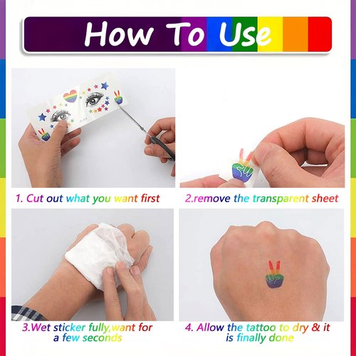 10 Sheets Pride Day Face Fake Tattoos Rainbow Temporary Tattoos Adult Rainbow Heart Butterfly Flower Feather Swan Colorful Tattoo Kit Gay LGBTQ Pride Day Parade Party Eye Makeup Face Decor Supplies