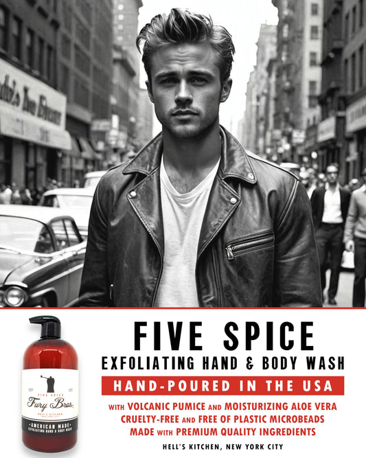 FURY BROS. Black Series Hand & Body Wash | Five Spice | Natural Ingredients | Exfoliating Volcanic Pumice | Moisturizing Aloe Vera | Made in USA | Cruelty-Free | Microbead Free | 16 oz