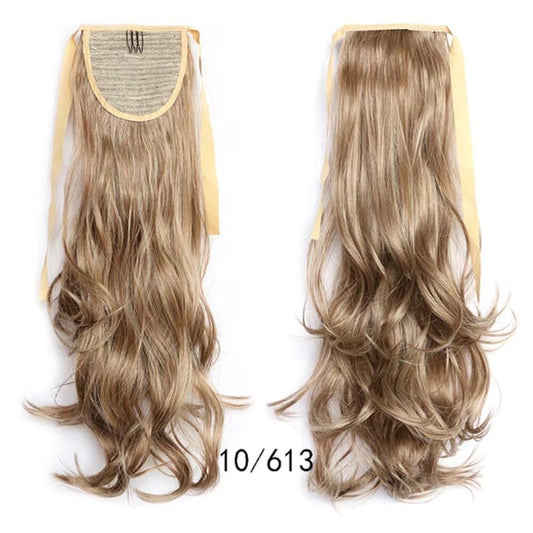 iLUU 20" Long Synthetic Ribbon Ponytail Clip Heat Resistant 90g Curly Wavy Hairpiece Ponytail #10/613 Brown and Bleach Blonde Piano Color Clip in Hair Extensions