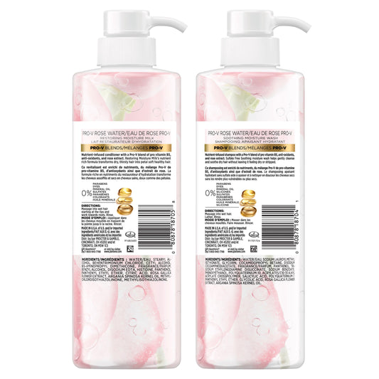 Pantene Sulfate Free Shampoo and Conditioner Set, Rose Water, Soothing and Moisturizing, Infused with Vitamin B5, for all Hair Types, Safe for Color Treated Hair, Pro-V Blend, 17.9 Fl Oz Each, 2 Pack