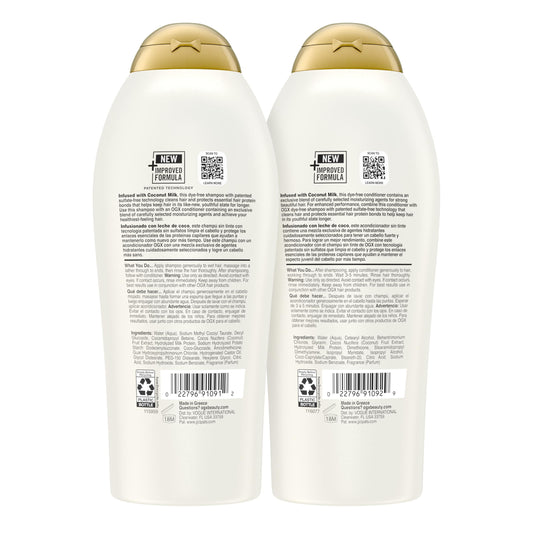 OGX Nourishing + Coconut Milk Shampoo & Conditioner, Set, 25.4 Fl Oz (Pack of 2)