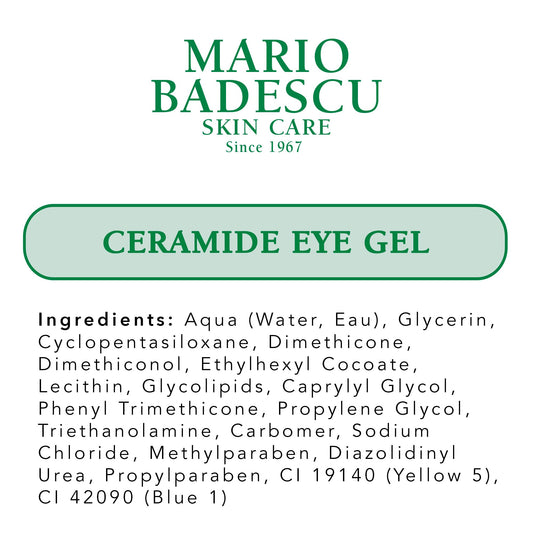 Mario Badescu Ceramide Eye Gel for All Skin Types | Oil Free Eye Gel that Tightens and Smoothes | Formulated with Ceramides & Glycerin, 0.5 Ounce