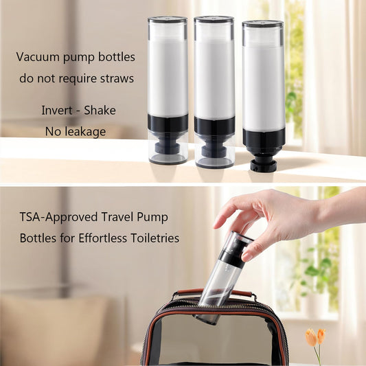 Wide Caliber airless Vacuum Pump Bottle, Reusable Cosmetics Pump Dispenser, DIY Easy Canned, Translucent Black Travel Size can be Packaged Separately Shampoo Light Lotion, etc. (1.7/oz, 4 Packs)
