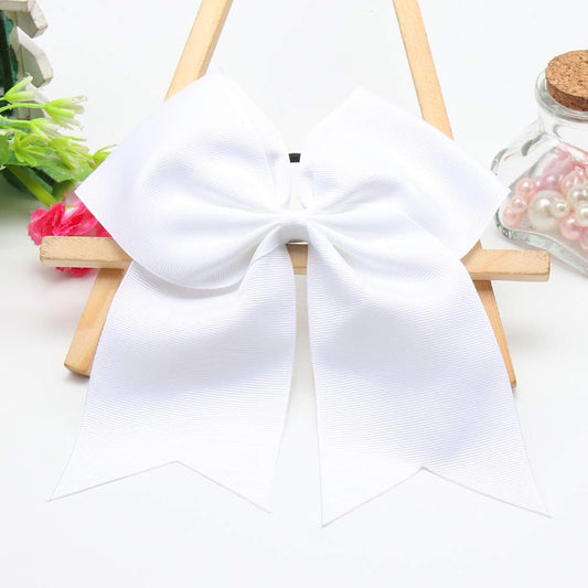 chiduerm 40Pcs 8" Large Cheer Hair Bows Grosgrain Ribbon Elastic Bands Handmade Ponytail Holder for Cheerleading Girls School College Sports (white)