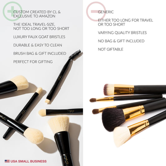 FULL FACE Travelista Midi Makeup Brush Set 7 Brush Types | 4.75-5 Inches Mini Makeup Brushes with Case | Synthetic Goat Make up Brushes | Easy Clean & Non-Staining Short Handle Travel Makeup Brushes