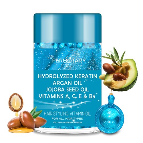 100 Capsules Hair Styling Serum with Keratin, Hair Treatment Oil for Frizzy Hair, Hair Serum with Vitamins A, C, E & B5, Argan Avocado Oil for All Hair Types, Leave-in Conditioner for Women & Men