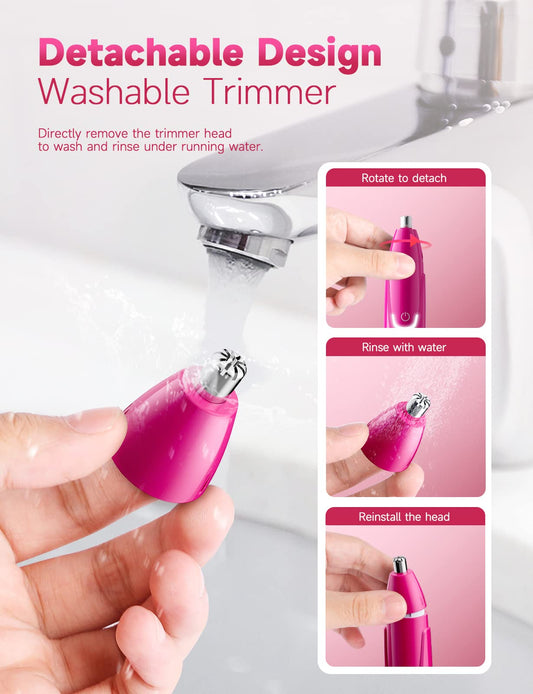 ZORAMI Rechargeable Ear and Nose Hair Trimmer - 2024 Professional Painless Eyebrow & Facial Hair Trimmer for Men Women, Powerful Motor and Dual-Edge Blades for Smoother Cutting Magenta