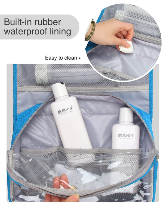 Relavel Travel Hanging Toiletry Bag for Women Men Large Capacity Makeup Bag Waterproof Cosmetic Storage Organizer Case for Bathroom Shower (Blue)