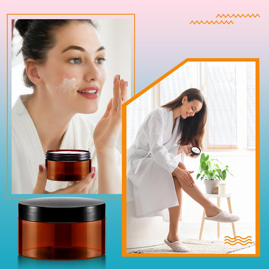 Dandat 24 Pcs 8 oz Plastic Jars with Lid and Label PET Cosmetic Containers Leak Proof Empty Cosmetic Jars Refillable Storage Travel Containers for Lotion Cream Gel Powder(Amber)