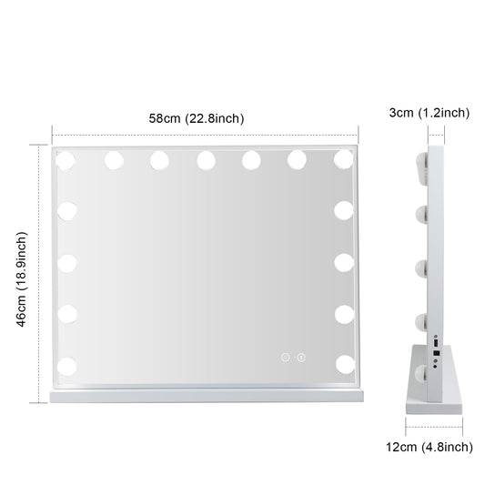 Leishe Vanity Mirror with Lights and Speaker Large Hollywood Vanity Mirror with 15 LED Bulbs and Smart Touch Control Desktop Makeup Mirror with 10X Magnification and USB Charge Port