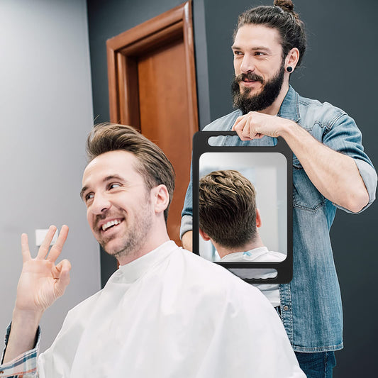 Mineloff Drop-Proof Hand Mirror with Double Handle, Large Rectangular Hand held Mirror -(16"x10") Largehand Mirrors with Handle for Salons and Beauty Salons, Light Salon Hair Mirror(Black)