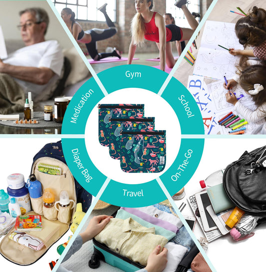 HIONXMGA TSA Approved Toiletry Bag, Set of 3 Clear Travel Toiletry Bag Quart Size Zipper Travel Pouch, Waterproof Makeup Cosmetic Bag for Women Men Kids Toiletries Carry on, Jungle Large