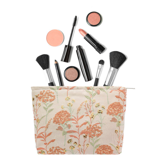 PAZIMIIK Makeup Bags for Purse Zipper Cosmetic Pouch Large Travel Canvas Make Up Organizer Tool Pouch for Women and Girls,Brocade Flower Pink