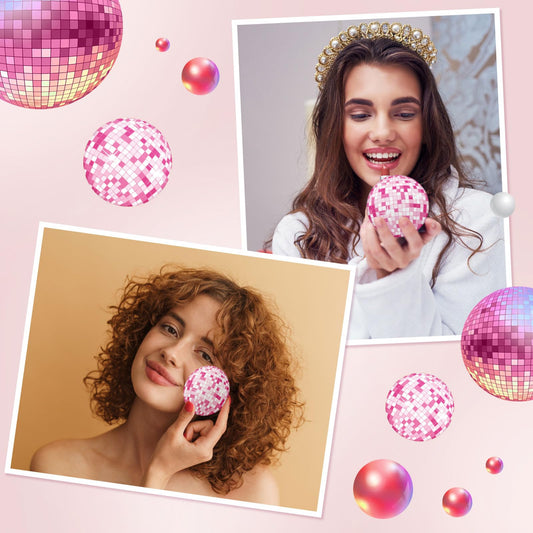 Qunclay 12 Pcs Disco Ball Compact Mirror 2.76 Inch Vintage Round Pocket Mirror Makeup Mini Mirror Handheld Portable Mirror for Purse, Women Gift Disco Party Supply Travel Daily (Pink)