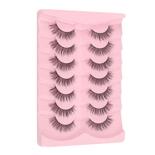 Lashes Wispy Eyelashes Natural Look 15mm Cat Eye Lashes Natural C Curl Soft Strip Lashes Fake Eyelashes 3D Volume Eye Lashes Pack 7 Pair Siligli Lash Eyelash