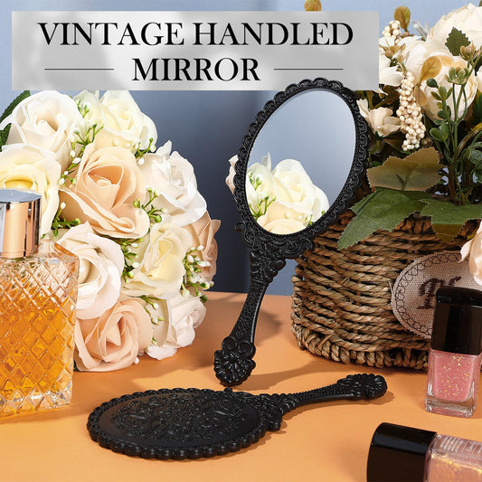 Suzile 60 Pcs Vintage Handheld Mirror Bulk Retro Hand Held Mirror Plastic Compact Travel Embossed Flower Decorative for Vanity Makeup Home Salon Travel Use(Black)