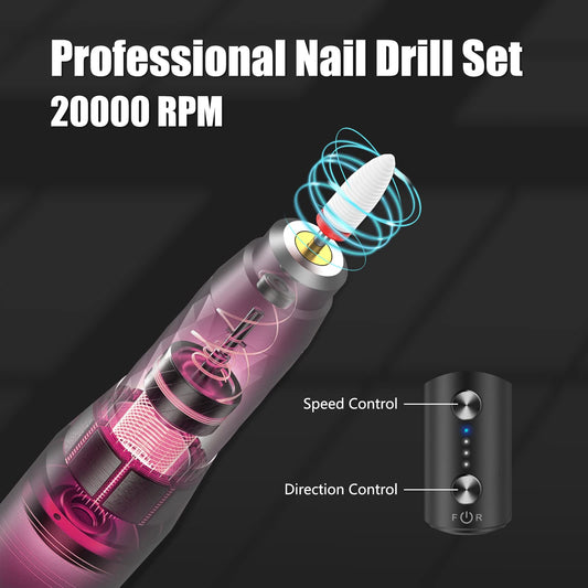 Electric Nail Drill Professional Efile Nail Drill Kit for Acrylic, Gel Nails, Manicure Pedicure Kit for Polishing Shape Tools(Black)