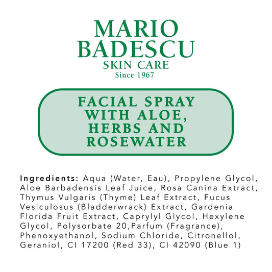 Mario Badescu Facial Spray with Aloe, Herbs and Rose Water for All Skin Types, Face Mist that Hydrates, Rejuvenates & Clarifies, 8 FL OZ