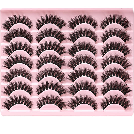 FARRED Wispy Lashes Hybrid Mink Eyelashes 14 Pairs Short Cat Eye Natural Fluffy False Eyelashes Faux Mink Strip Eye Lashes Pack for Daily Makeup (F18 | 8-14 mm)