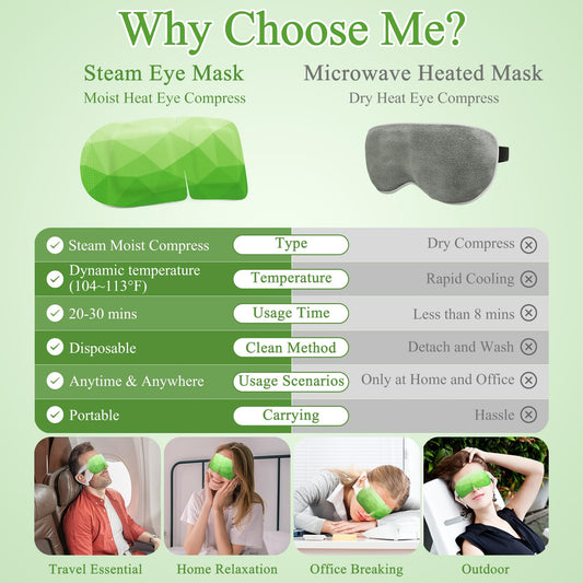 FRSHMORN Steam Eye Mask, Heated Eye Mask for Sleep, Warm Compress for Eyes, Self Heating Disposal Eye Mask Comfortable Sleep Mask for Home, Office, Spa, Travel Essentials (Green Tea, 32 Packs)