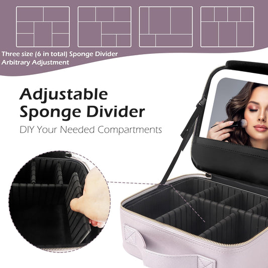 MOMIRA Travel Makeup Bag Cosmetic Bag Makeup Organizer Bag with Lighted Mirror, Adjustable Brightness in 3 Color Scenarios, Waterproof Makeup Train Case, Gift for Women - Violet grey