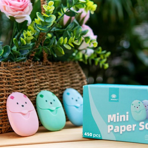 BAIKAFU 9 Boxes (450 Sheets) Mini Portable Disposable Travel Paper Soap Sheets Foaming Hand Washing Bath Scented hand soap for Indoor, Outdoor, Travel, Camping Hiking