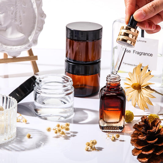 Layhit 60pcs 2 oz Glass Jars with Lids Empty Round Cosmetic Jars with Inner Liners White Labels for Storing Lotions Powders Ointments Candle Making (Clear,Amber,Black)