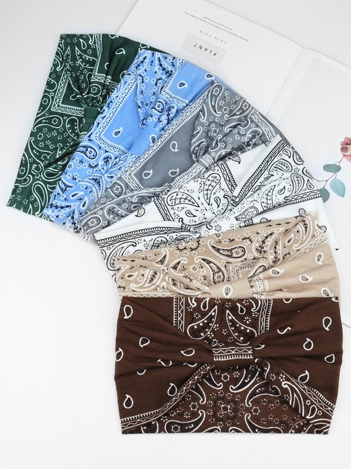Awumbuk Wide Headbands for Women Knotted No Slip Head Bands Soft Turban Headband Hair Accessories Boho African Solid Color Head Wraps for Women Yoga Workout Pack of 6 (Nature)