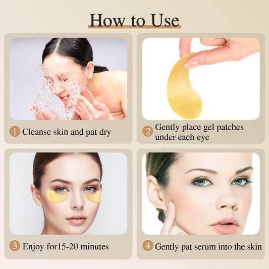USTELIR Under Eye Patches, 40 Pairs 24K Gold Eye Masks with Collagen, Eye Patches for Puffy Eyes, Dark Circles & Wrinkles, Under Eye Masks for Skin Care Set, Eye Gel Pads Spa Gifts for Women & Men