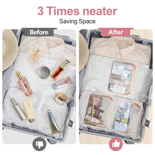 PACKISM TSA Approved Toiletry Bag - Pink Floral Print Clear Travel Bags, Suitable for Gifts, with Supporting Frame, Perfect for Travel Essentials, Thick No Smell