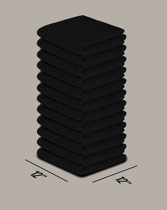 Softolle 100% Cotton Ring Spun Wash Cloths – Bulk Pack of Washcloths – 12x12 Inches – Wash Cloth for Face, Highly Absorbent, Soft and Face Towels (Black, 24 Pack)