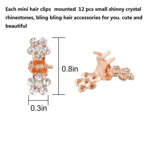 Glitter and Rhinestone Hair Accessories - Mini Claw Clips with No-Slip Grip and Metal Clamps, Assorted Colored Flower Designs for Girls and Women (Rose Gold-White Crystal)