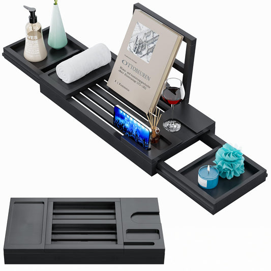 Yirilan Bamboo Bathtub Tray, Expandable Bathroom Tray, Waterproof Tray Caddy, Perfect Bath Caddy for Home Spa, Gift for Loved Ones, Black