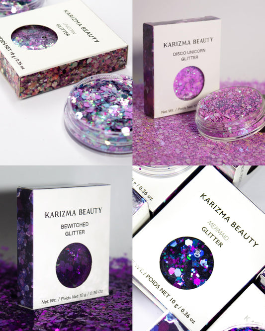KARIZMA Enchanted Glitter Pack! 4x 10g Chunky Face Glitter, Hair Glitter, Eye Glitter and Body Glitter for Women and Men. Rave Glitter, Festival Accessories and Cosmetic Glitter Makeup.
