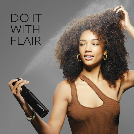 FLAIROSOL Spray Bottle for Hair, Continuous Spray Bottle with 0.3MM Ultra Fine Mist, Water Mister for Hairstyling, Cleaning, Plants, Pets, 10.1oz/300ml, Black Bottle, White Print