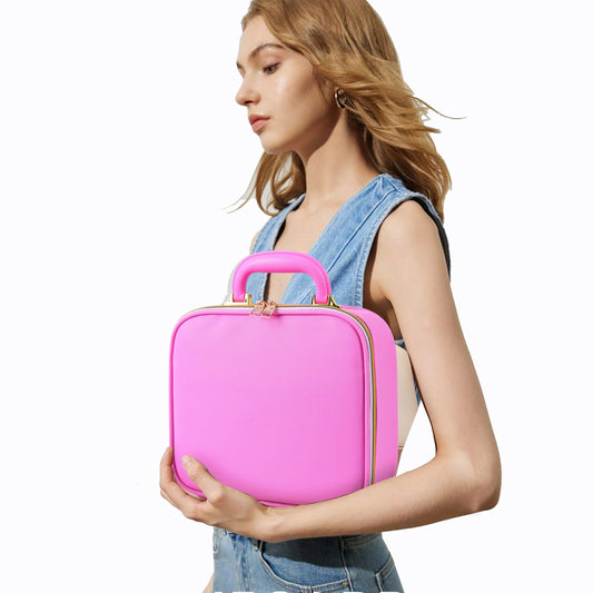 CapsLock Makeup bag with Mirror, LED Light, 3 Adjustable Brightness Levels, Cosmetic Bag with Handle, Portable Storage, Adjustable Partition, Waterproof, Monogrammed Gift Makeup Bag for Women