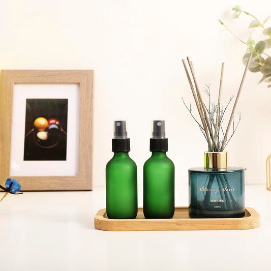 NOOEEISS Green Glass Small Spray Bottles 2 oz 24 Packs,Fine Mist Sprayer Pretty Finish,Refillable Containers mini spray bottles for Cleaning Solutions and Skin Care (Green Frosted 24pcs)