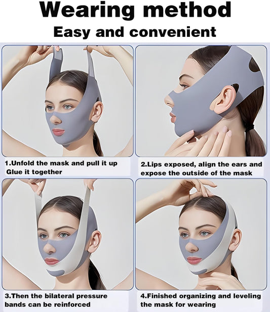 V-Line Lifting Chinstrap,Reusable V Line Lifting Mask with Chin Strap,Chin strap 23-27 Inches (Blue)