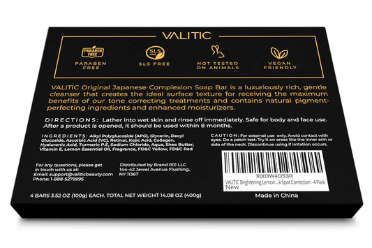 VALITIC Brightening Lemon & Turmeric Kojic Acid Soap with Vitamin C, Retinol, Collagen - Original Japanese Complex Infused with Hyaluronic Acid, Vitamin E, Shea Butter, Castile Olive Oil (4 Pack)