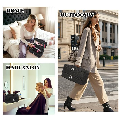 ARLMEGOR Double-Layer Travel Carrying Case for Revlon One-Step Hair Dryer Brush Volumizer Styler Shark FlexStyle Attachment Portable Storage Organizer Bag Hair Tools Travel Bag (Black)