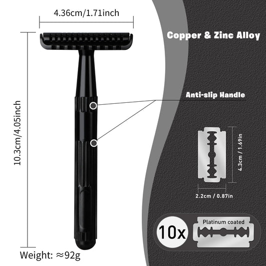Matte Black Double Edge Safety Razor, Single Blade Razors for Men and Women, with 10 Stainless Steel Safety Razor Blades, Reusable, Eco-friendly, Smooth and Close Shaving, Plastic Free
